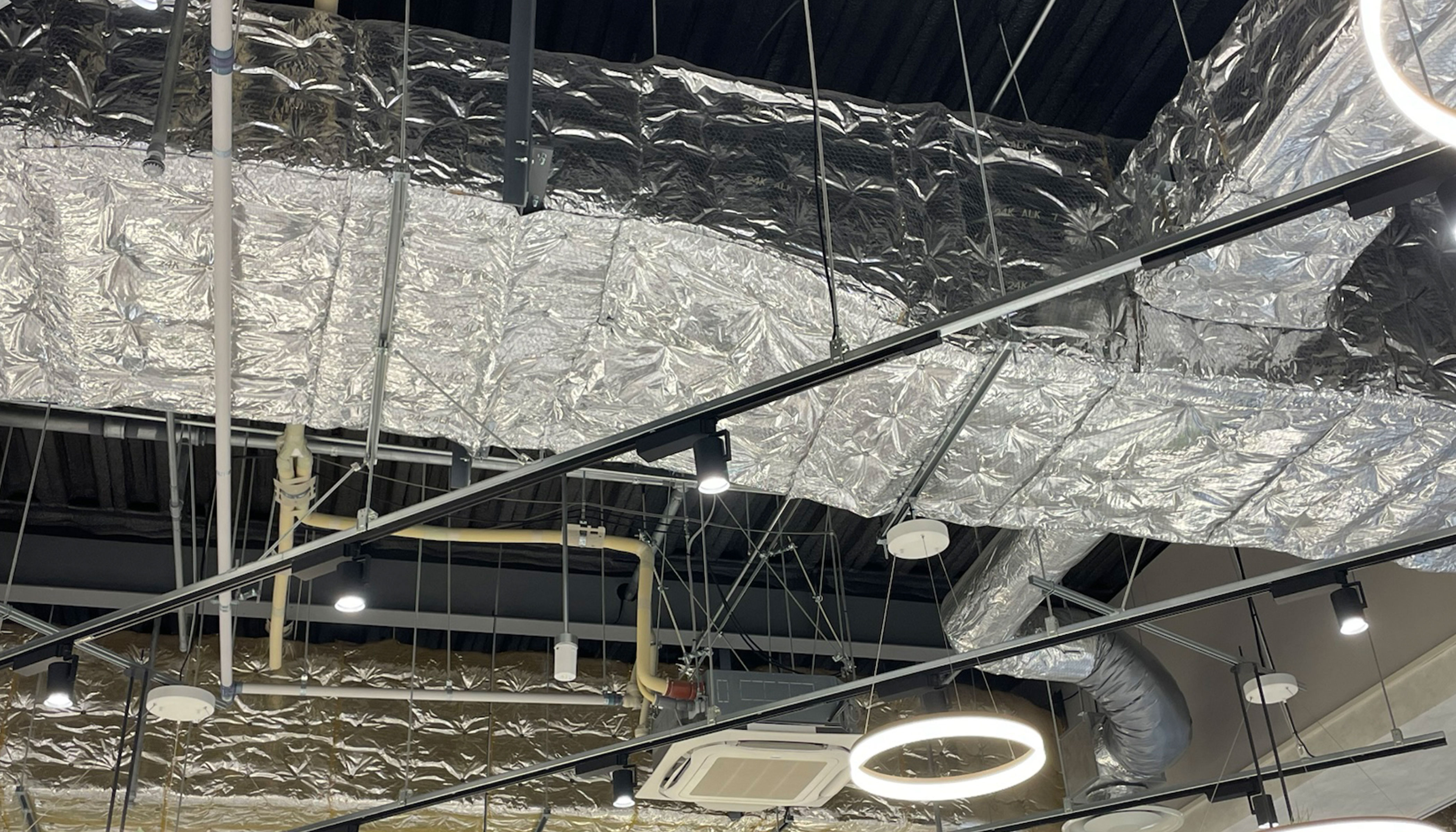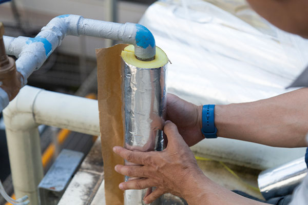ダクトなど暖かい空気や冷たい空気の通り道を保温する工事です。空調設備に欠かせない加工を行います。